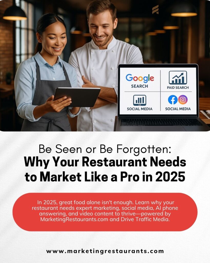 At MarketingRestaurants.com, powered by Drive Traffic Media, we don’t just build websites—we build brands. We don’t just run ads—we build traffic machines that convert hungry searchers into loyal customers.